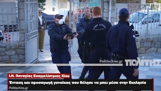 Χίος εικόνες ντροπής από αστυνομικούς να συλλαμβάνουν τον Ιερέα Παπαχριστόφορο στον Ι.Ν Ευαγγελίστριας Χιου και πιστούς επειδή είχε ανοιχτές τις πόρτες στην πρώτη Ανάσταση, Μεγάλο Σάββατο πρωί. Του επιβλήθηκε πρόστιμο 5.000 ευρώ